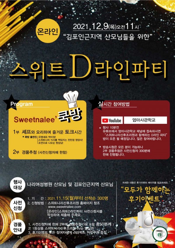 ② 스위트나리산후조리원 홈페이지 → 공지사항 → 2021 스위트D라인 파티 후기 게시물 댓글로