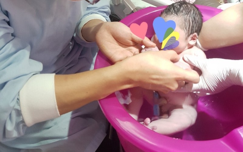 그 중간인 감성분만의 형태로 캥거루케어와 태어나자마자 자궁 속과 같은 욕조에서 아이 첫 목욕을 시켜주는 감성수 목욕을 하는 김포 나리병원을 택했다.
